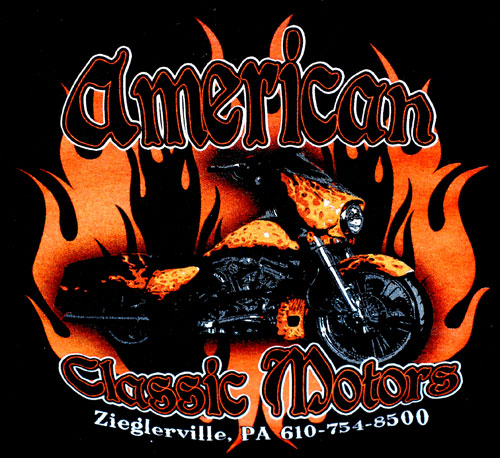 Fortunately, we just completed this new design on some hooded sweatshirts for one of our favorite customers, American Classic Motors. We came up with this design from a photograph of one of their custom bikes they built.
