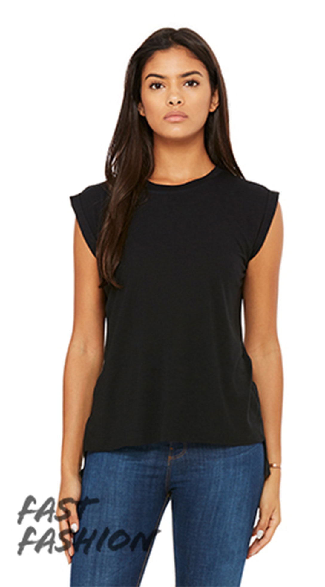 The Bella+Canvas Women’s Flowy Muscle Tee with Rolled Cuff